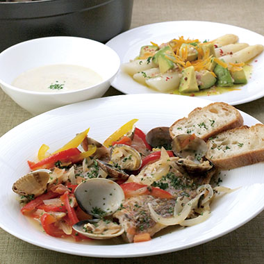 旨味とコクの詰まったスープにあさりの美味しさと野菜の甘みをプラス。