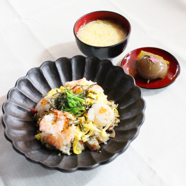 ・ちらし寿司 ・かきたま汁 ・桜の葛まんじゅう |