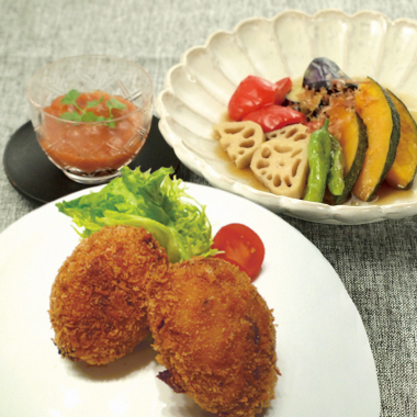 ・コロッケ ・野菜の揚げ浸し ・トマト寒天 |