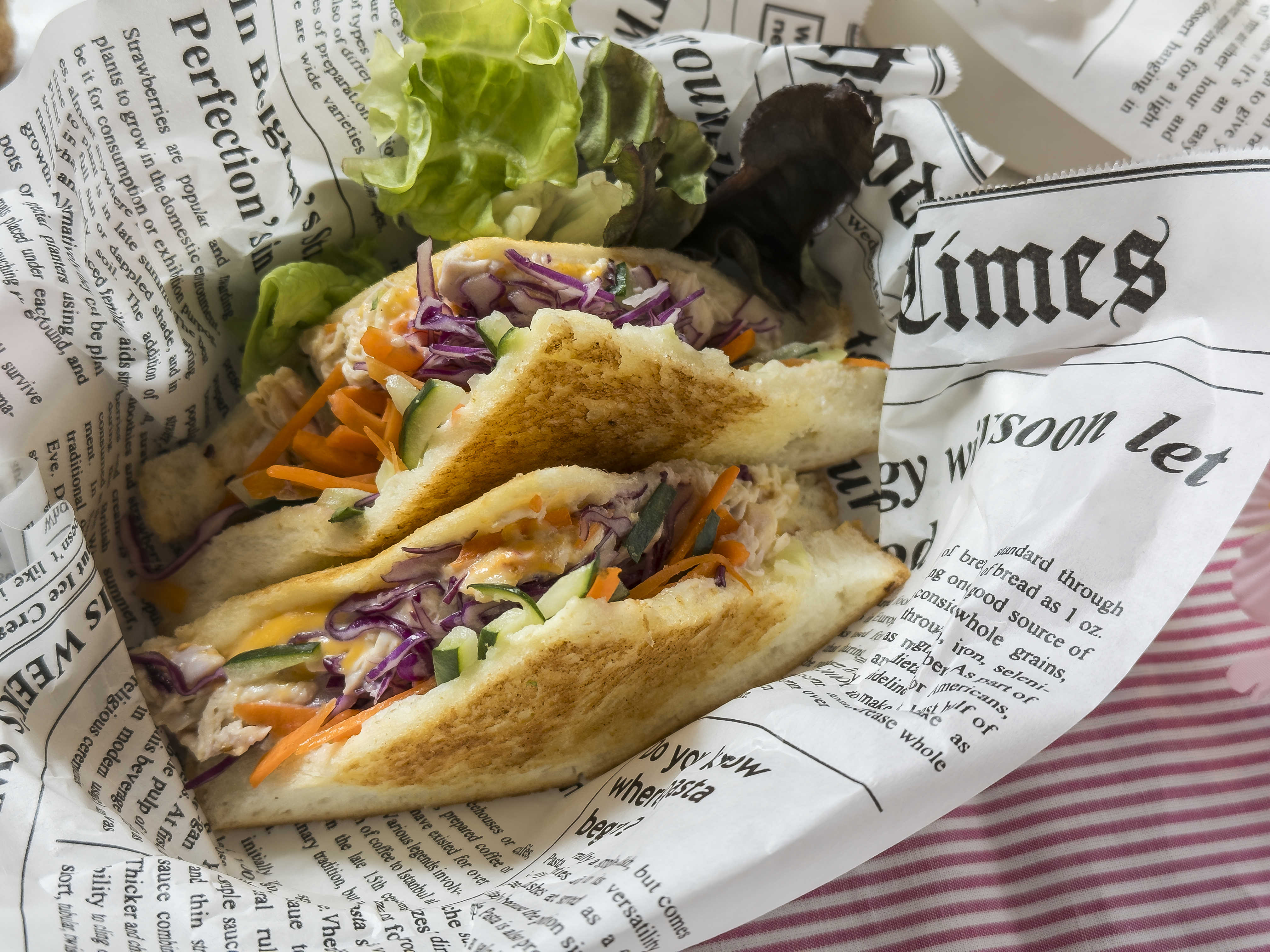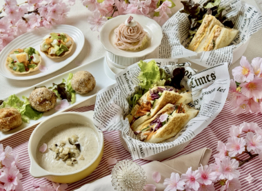 野菜たっぷりメニューです。 【メニュー】 ○サトイモエビボール ○エッグアボカドカナッペ ○キノコポタージュ ○サーモンメルトサンドイッチ ○野菜たっぷりホットサンド ○サクラモンブラン |