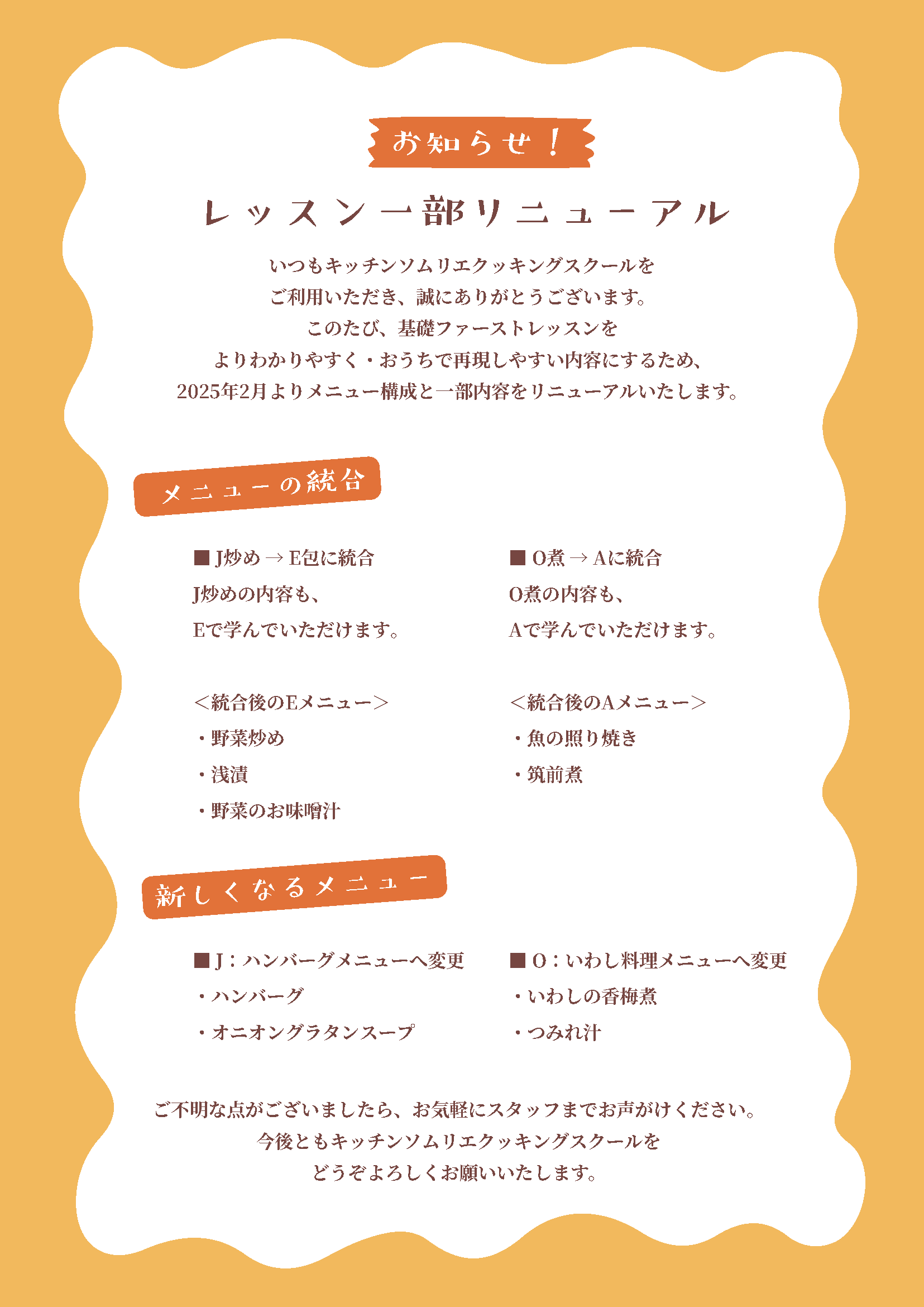 レッスン一部リニューアル のお知らせ